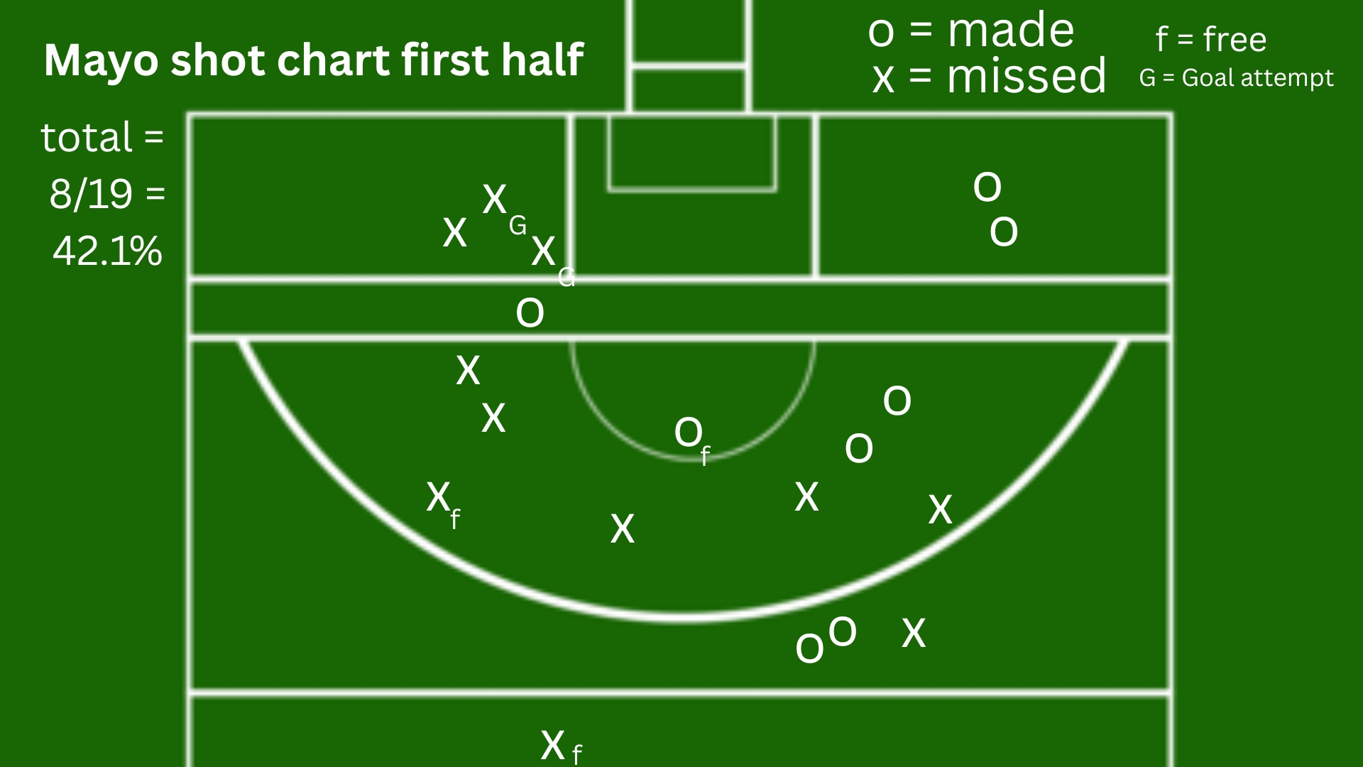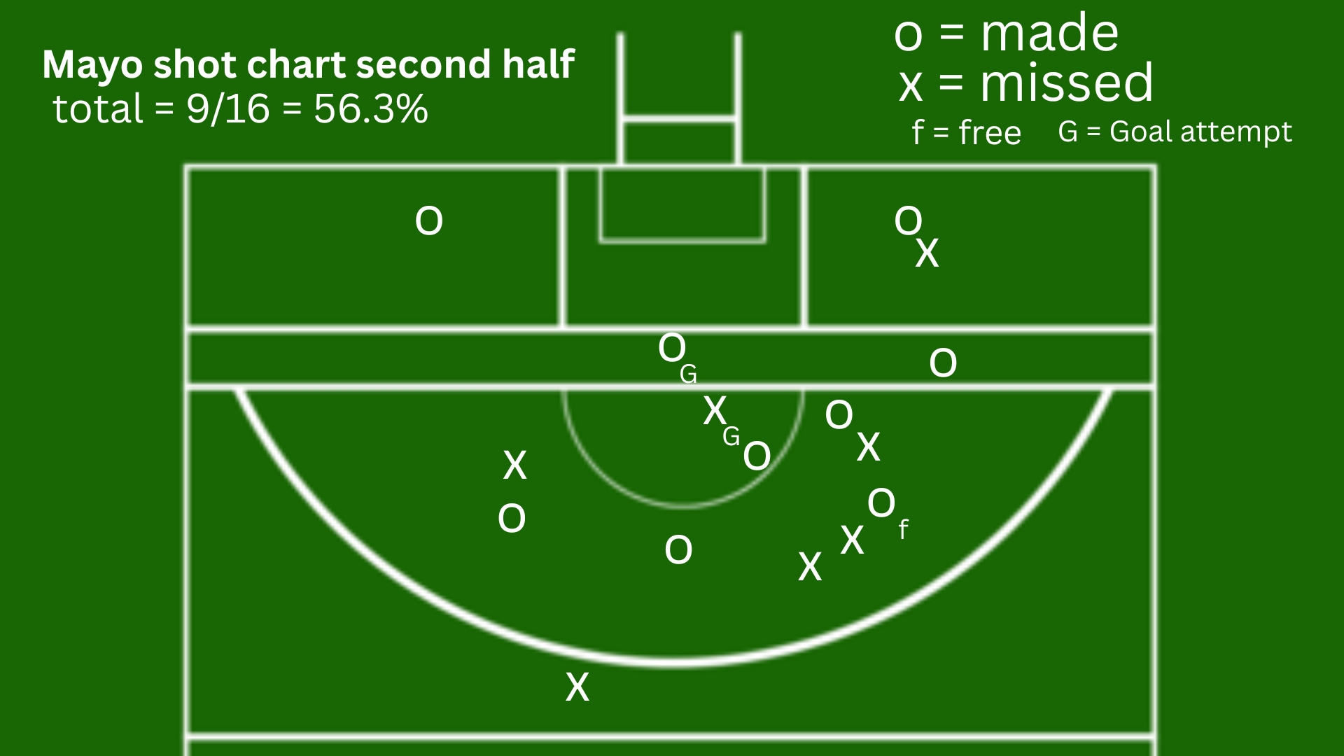 Overall, across the whole game, Mayo ended up making 17 from 35 shots, goal chances included, which left them with an efficiency of 48.6 percent.