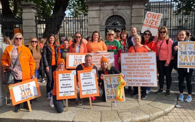 Childcare providers from Mayo demonstrating outside Dáil Éireann on Tuesday, September 26