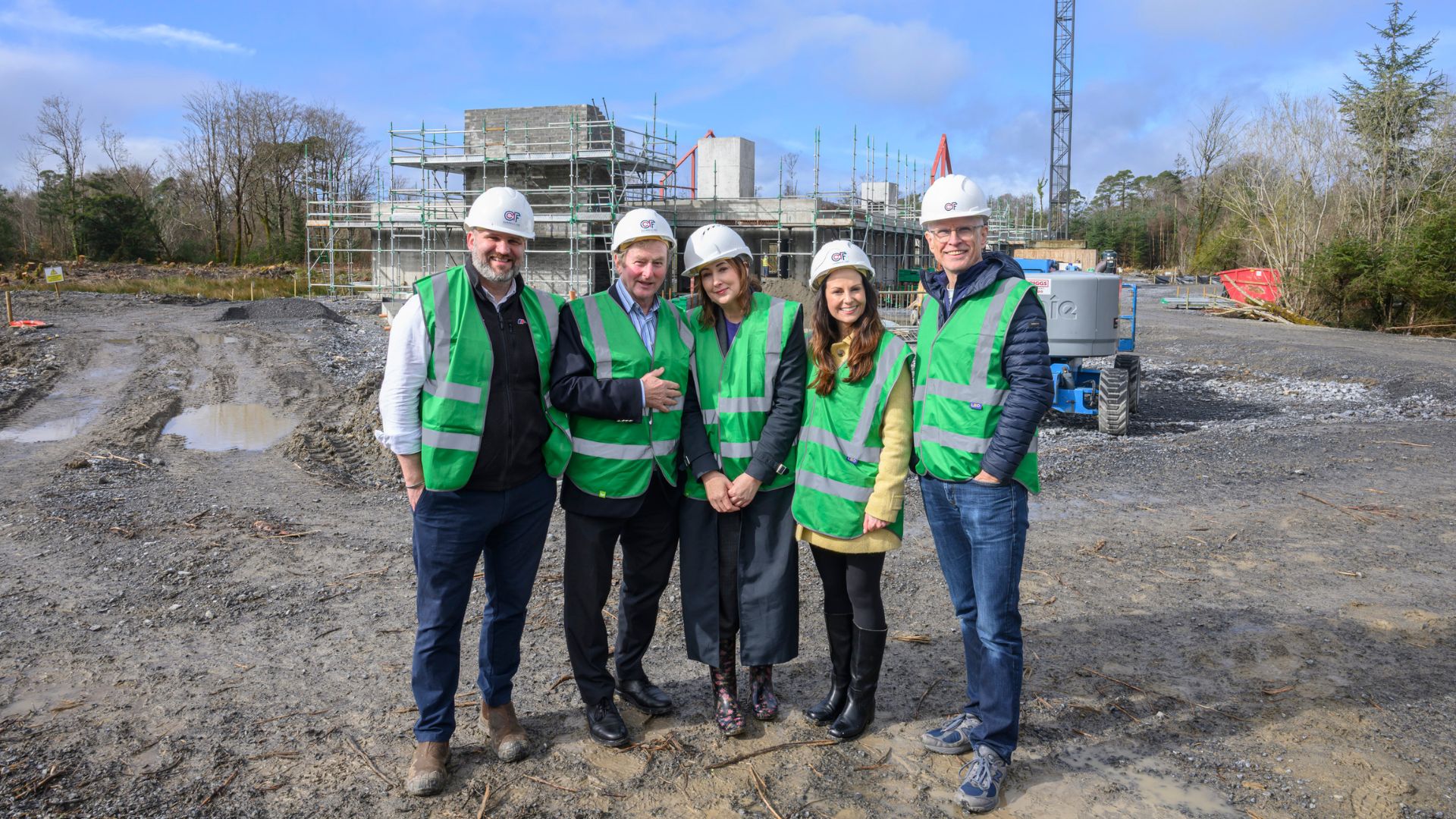 At the site of Cancer Fund for Children’s new Daisy Lodge therapeutic short break facility in Cong, Co Mayo, are, from left: Phil Alexander, CEO, Cancer Fund for Children; former Taoiseach Enda Kenny; Siobhan Hanley, Director of Development and Communications, Cancer Fund for Children; Caroline McGroary; and Robin McCormack, Cancer Fund for Children Board Of Trustees. Pic: Michael McLaughlin