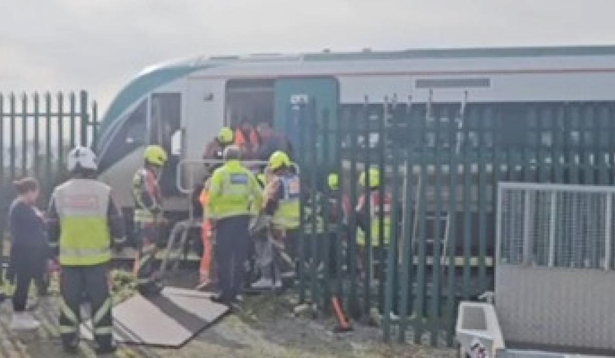Emergency services aiding passengers to disembark the Dublin to Westport train earlier today.