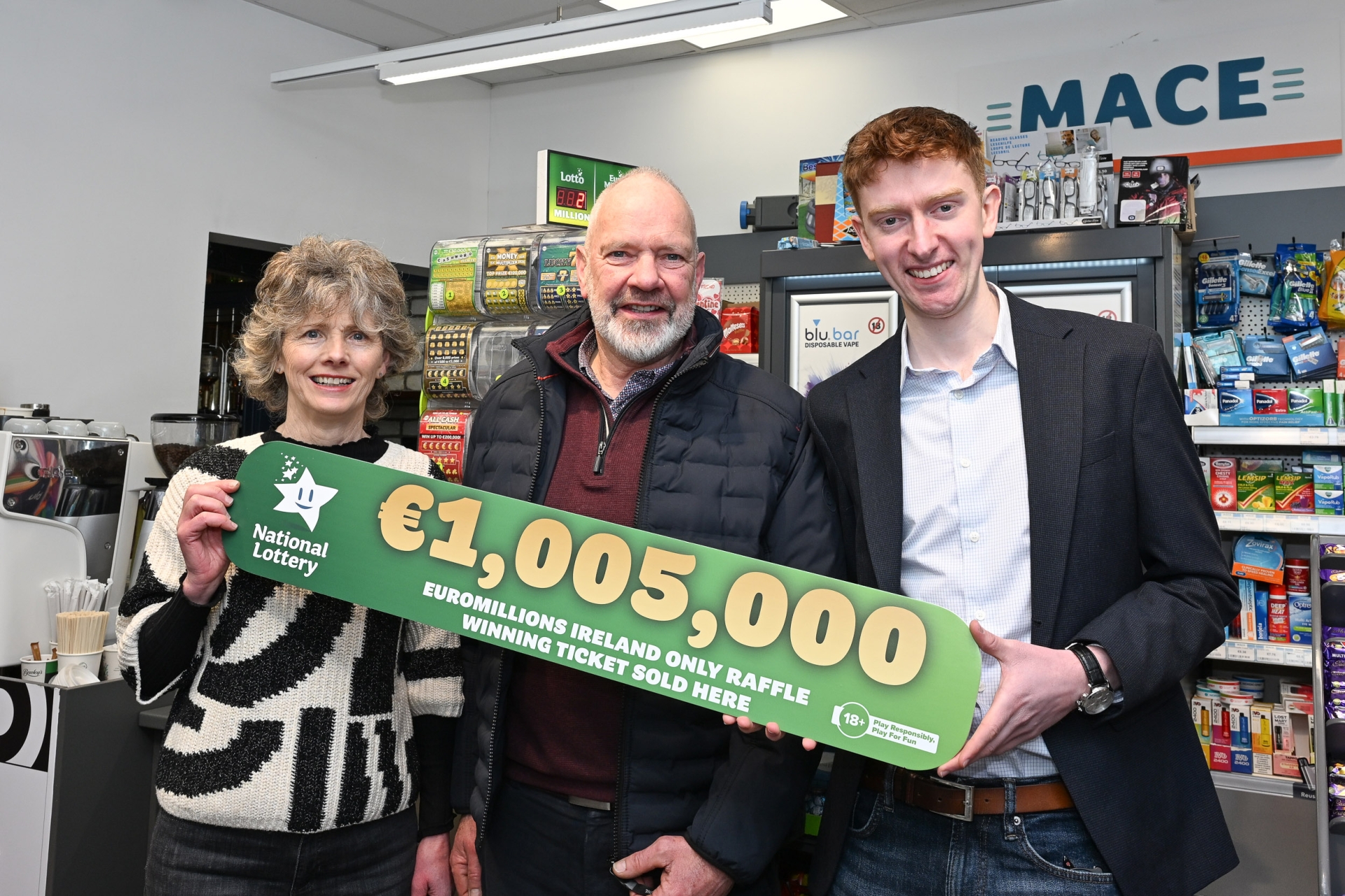 "We are delighted with today’s news that we are the store to have sold the winning EuroMillions Ireland Only Raffle ticket worth €1,005,000! I’d like to thank our amazing team, for their dedication and hard work, serving our local community here in Leighlinbridge.”
