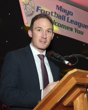 Alan Dillon, (Minister of State with responsibility for Local Government and Planning) pspeaking at the Mayo Football League Annual Presentation Dinner and Awards Night in The Castlecourt Hotel Westport. Photo Michael Donnelly