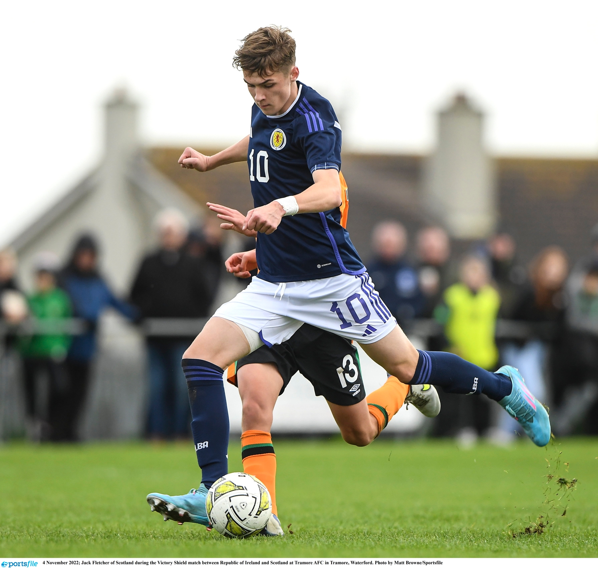 4 November 2022; Jack Fletcher of Scotland during the Victory Shield match between Republic of Ireland and Scotland at Tramore AFC in Tramore, Waterford. Photo by Matt Browne/Sportsfile