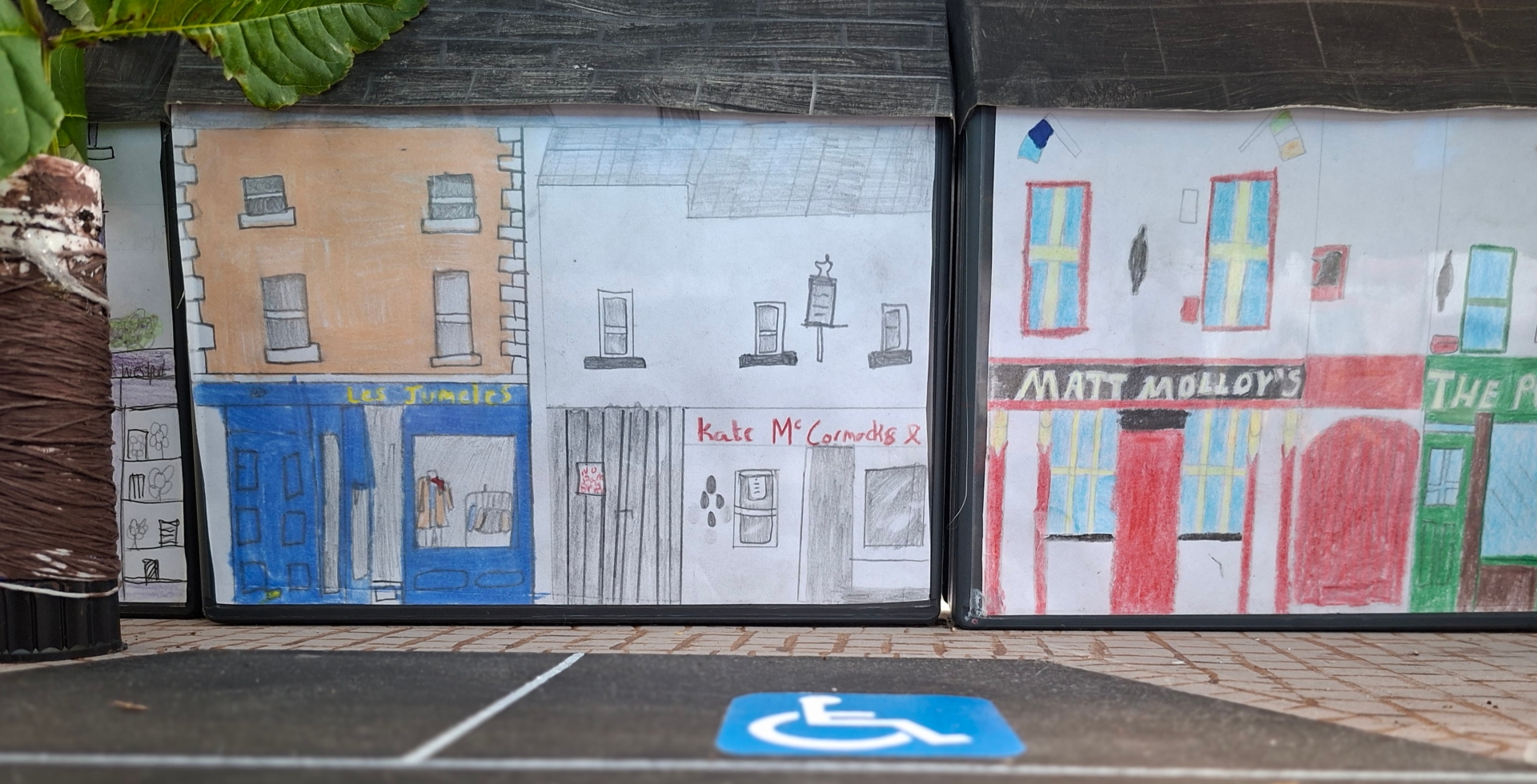 Each of the 21 pupils was assigned a section of the street to illustrate, and their colourful drawings were inserted into the transparent fronts of recycled DVD cases to represent the shopfronts. The street’s features were brought to life with recycled materials: empty glue sticks wrapped in twine as trees, raisin boxes as chimneys, and other reclaimed items forming the street’s features.