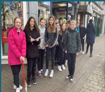 The 6th year students using a trundle wheel to measure Bridge Street
